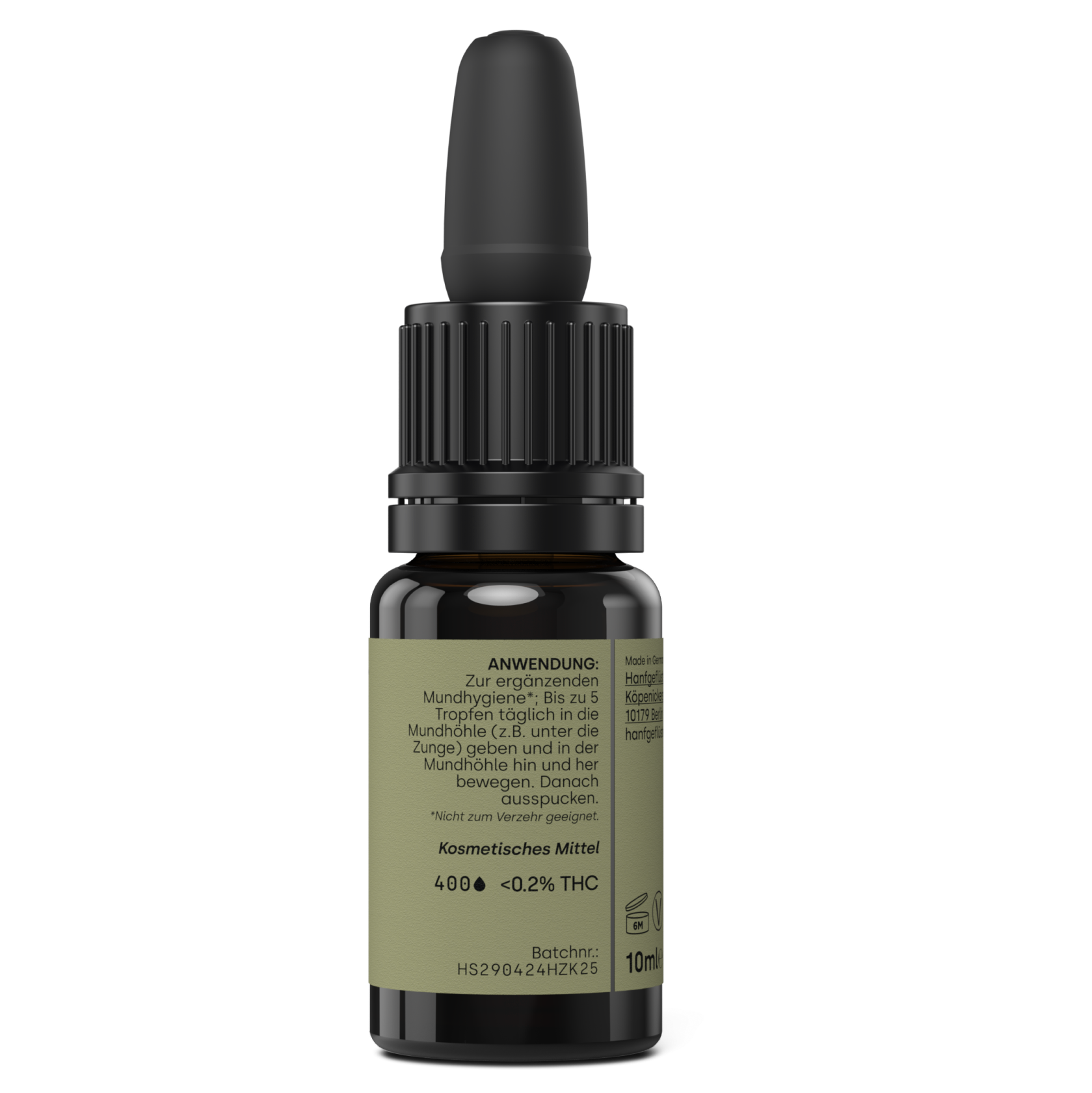 CBD Öl wird am besten direkt unter die Zunge getropft und dort 30-60 Sekunden gehalten. So wird es effizient von den Mundschleimhäuten aufgenommen.